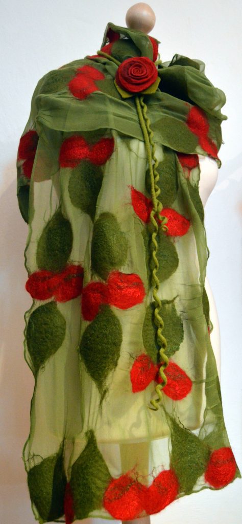 Wie wäre es mit einer bunten Herbst oder Winterlandschaft, auf der es viel Platz für die Tiere und Zwerge gibt? Oder ein Filzhäuschen in dem sich viele Schätze verstecken können? Vielleicht ein Tischset, Sitzkissen oder doch lieber eine Tasche, Kinder würden sich bestimmt über feste Seile, farbige Bälle, eine Einkaufstasche oder eine Schatzkugel mit einem glitzernden Edelstein in der Mitte freuen. Oder doch lieber einen Schal, schönen Schmuck oder wunderschöne Blumen? Unter fachmännischer Anleitung sind ihrer Phantasie keine Grenzen gesetzt.