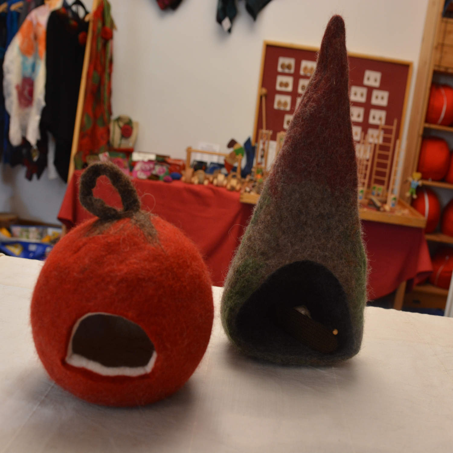 Gerne können Sie auch nur vorbeikommen um die ausgestellten Filzobjekte und Holzspielsachen anzuschauen oder zu kaufen.